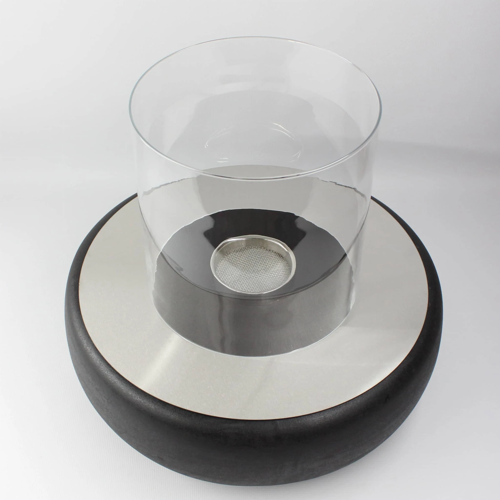 Opcjonalna konfiguracja blatu biolampy: w obrębie klosza stal czarna lakierowana, poza kloszem stal inox satynowana - dopłata 170,00 zł