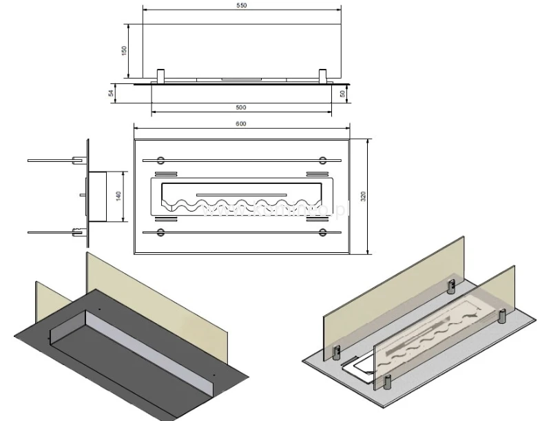 INFIRE INSERT 600 INOX to specjalny wkład z palnikiem o szerokości 500 mm. Obudowa w którą wbudowany jest palnik ma za zadanie przede wszystkim absorbować ciepło nie pozwalając nagrzać się ponad normę podłożu pod biokominkiem. Ponadto komora obudowy pod palnikiem niweluje ciśnienie, które może powstać przy ewentualnym przelaniu paliwa. Jest to system zapewniający bezpieczne użytkowanie biokominka.