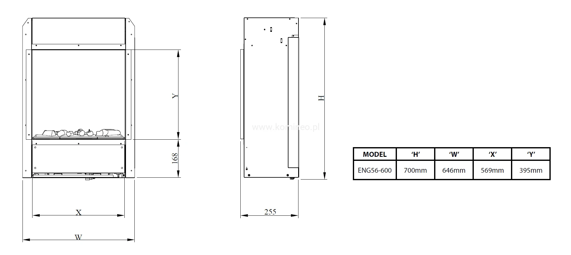 - Wymiary paleniska (szer. x wys.) 56 x 40 cm