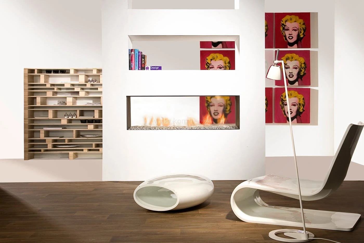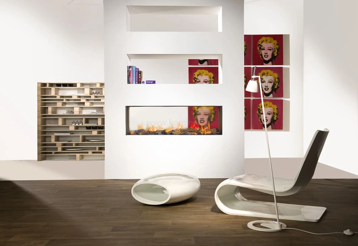 - Model dwustronny z szybą na przestrzał umożliwia wspaniały widok na palenisko z kilku stron.