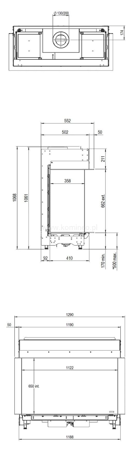 Kominek gazowy Faber MatriX 1050/650 III trójstronny