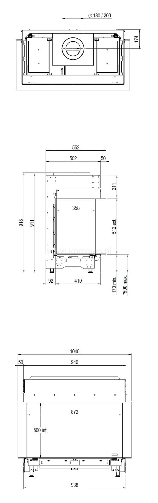 Kominek gazowy Faber MatriX 800/500 III trójstronny