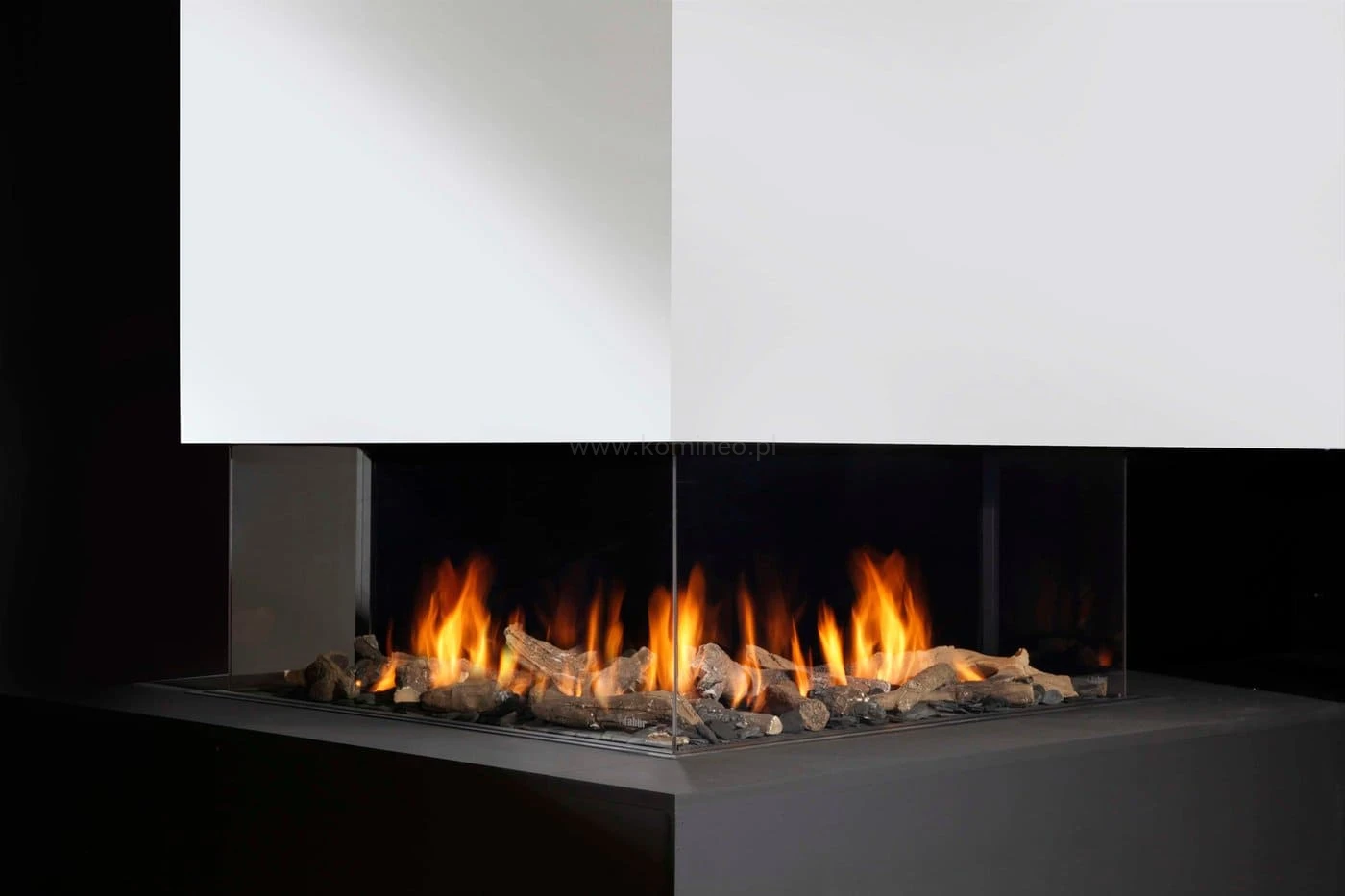 Kominek Faber z serii Premium. Ten efektowny, narożny kominek wyposażony jest w palnik Faber Step Burner®. Spraw, by prezentował się wyjątkowo, wybierając dekorację paleniska, która wkomponuje się w styl Twojego wnętrza - ceramiczne polana (brązowe), grys (szary) lub otoczaki Carrara (białe).