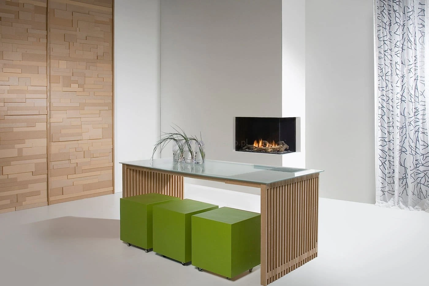 Seria Duet Smart to narożne kominki do zabudowy, wyposażone w palnik Flat Burner®. Flat Burner® kreuje poziomy obraz ognia, w który można wpatrywać się długimi godzinami. Elegancki, minimalistyczny design tego urządzenia ozdobi każdą przestrzeń mieszkalną. Dwustronne modele Duet dostępne są w wersji lewostronnej i prawostronnej oraz w dwóch rozmiarach M (680 mm) i L (990 mm).
