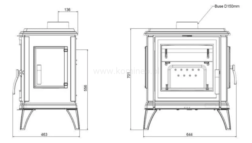 - Wyposażenie komory paleniska deflektor, ruszt, ogranicznik drewna, popielnik