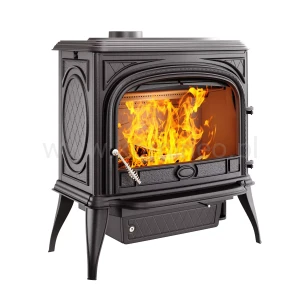 - Żeliwo, które znakomicie kumuluje ciepło i oddaje je nawet po wygaśnięciu paleniska, gwarantuje przyjemne i równomierne ogrzewanie pomieszczenia.
