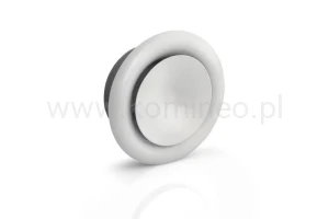 Obrotowy talerzyk anemostatu umożliwia płynną regulację natężenia przepływu powietrza.