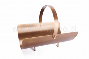 Kosz na drewno, blacha mosiężna szczotkowana PATYNA, półokrągły, rączka łuk, 38/50 cm