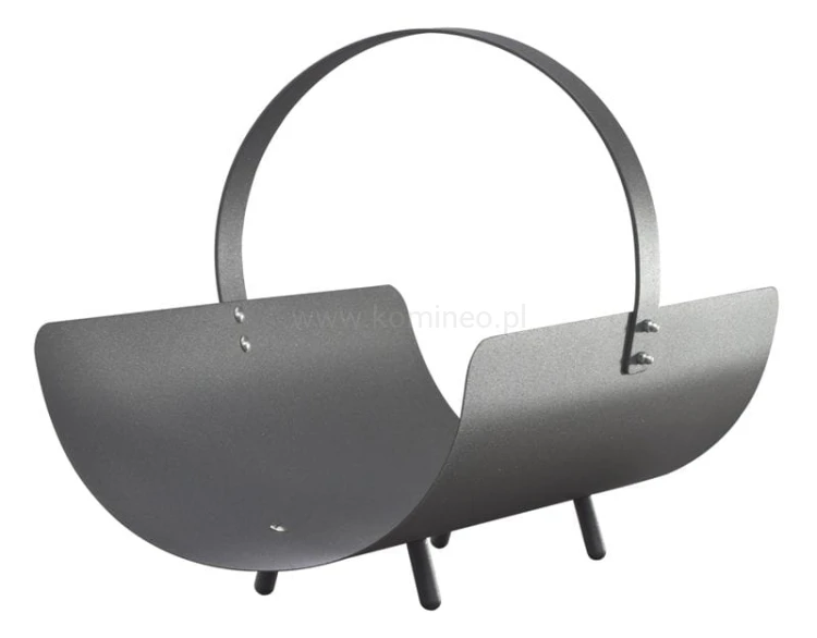Kosz na drewno półokrągły szer. 38 x gł. 50 cm, ze stali malowanej proszkowo na szaro, rączka szara