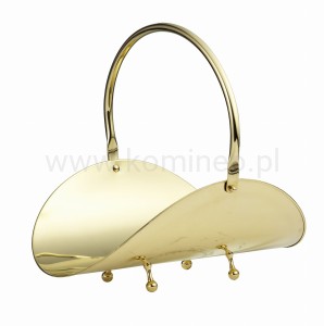Kosz na drewno okrągły, rączka rurka łuk, wykonany z mosiądzu POŁYSK