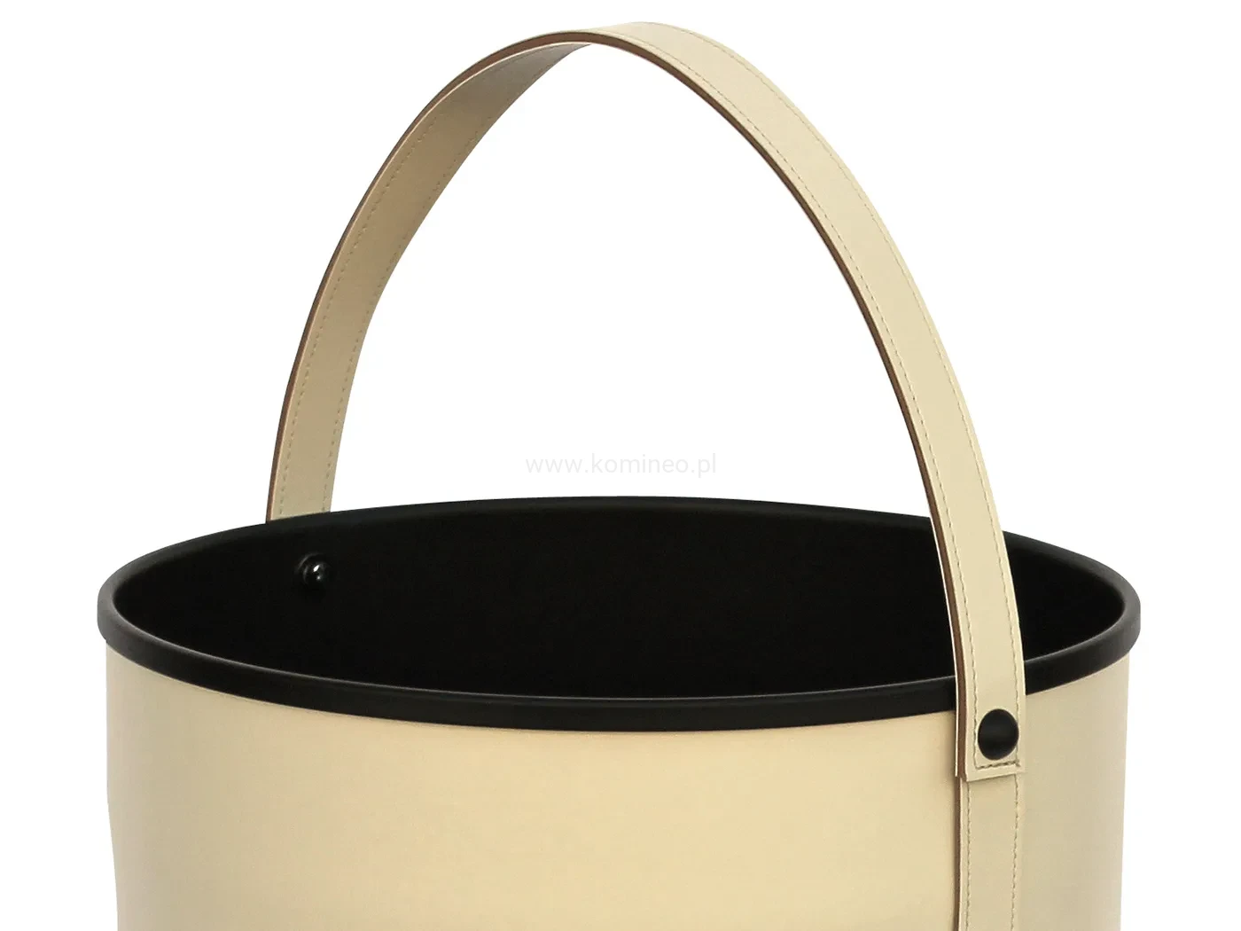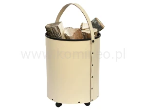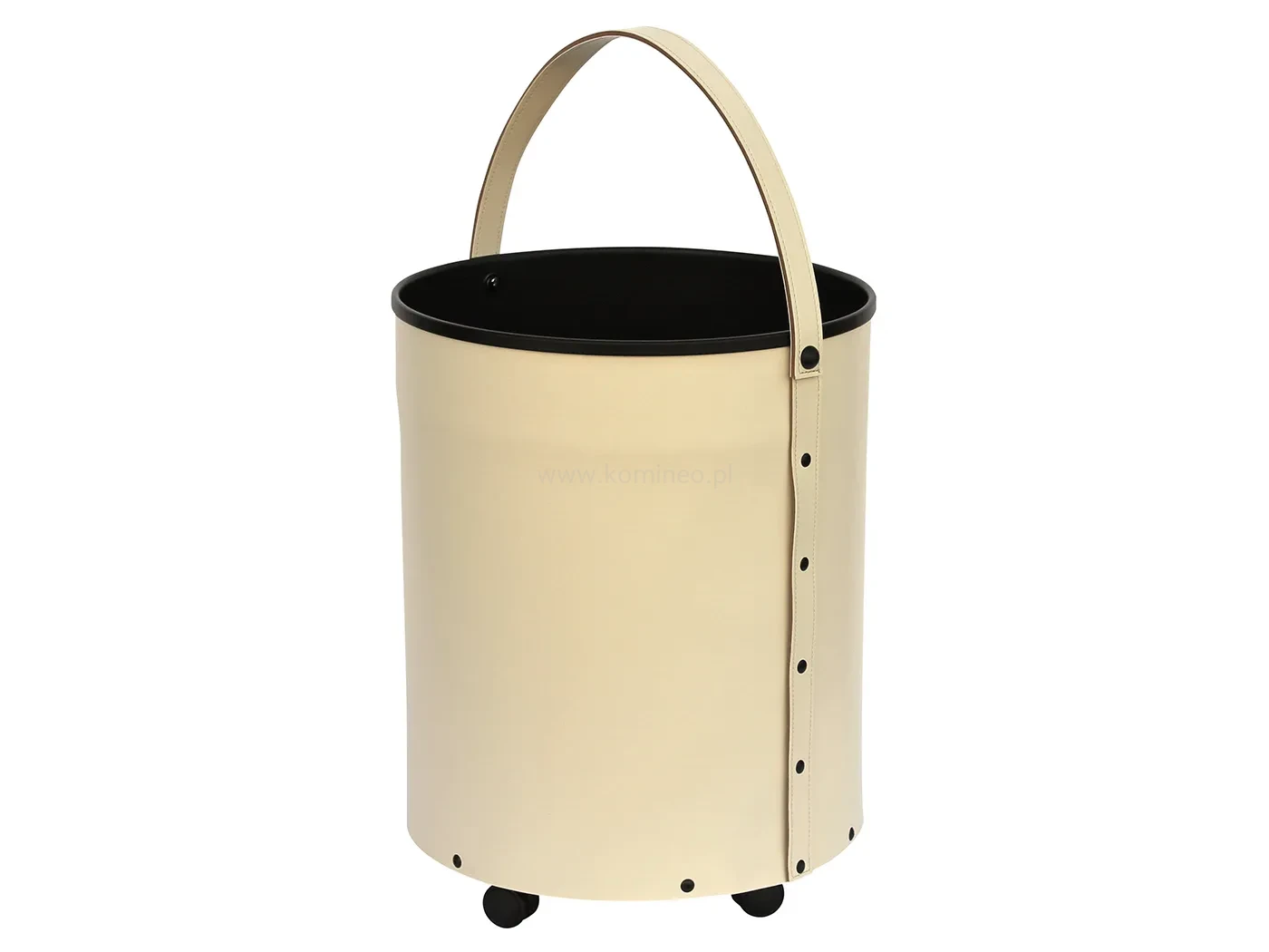 Kosz na drewno o kształcie walca, na kółkach, obciągnięty ekoskórą w kolorze kremowym, wym. 50/Ø38 cm, 4,00kg