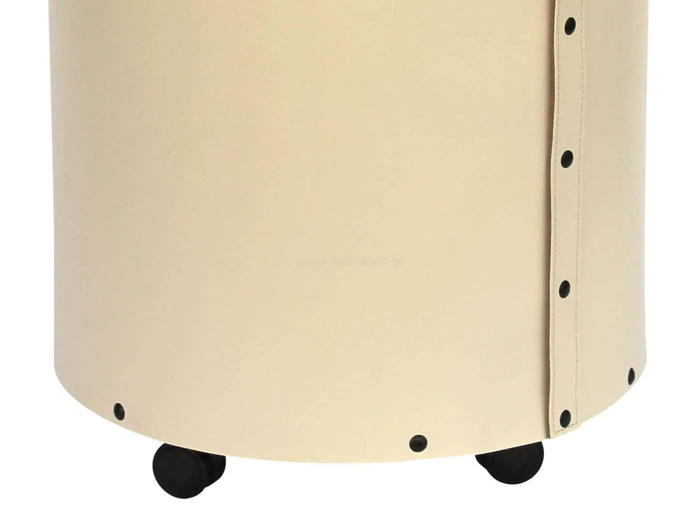 | Kolor - wykończenie: | kształt walca; obciągnięty ekoskórą w kolorze kremowym; posiada zamontowane kółka |