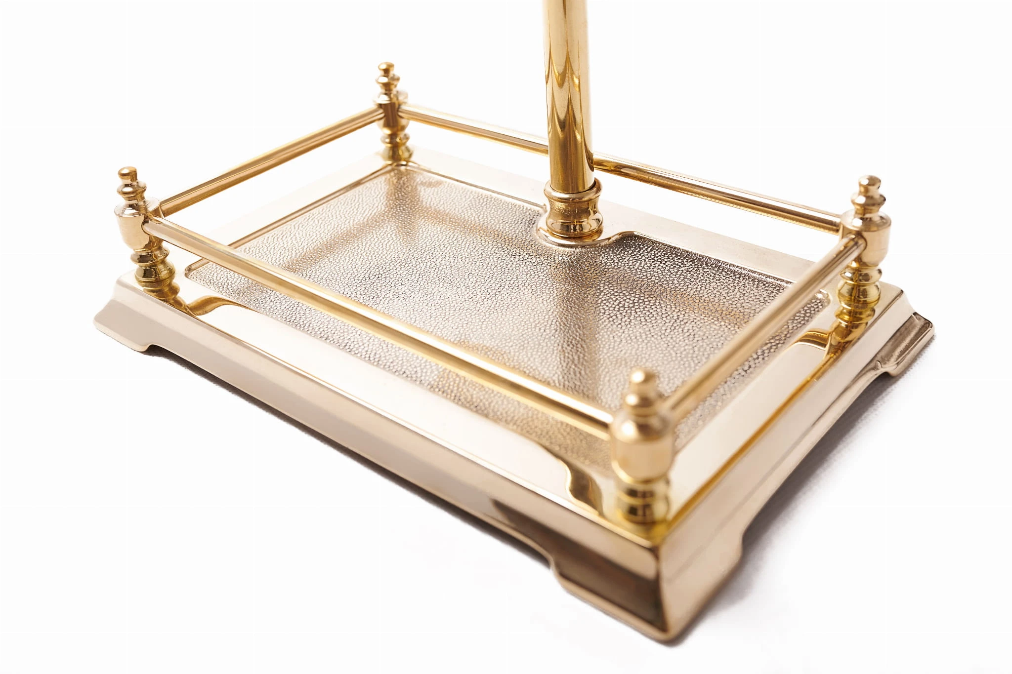 - Informacje dodatkowe (wykończenie) zestaw 4 przyborów na stojaku o prostokątnej podstawie, mosiądz POŁYSK