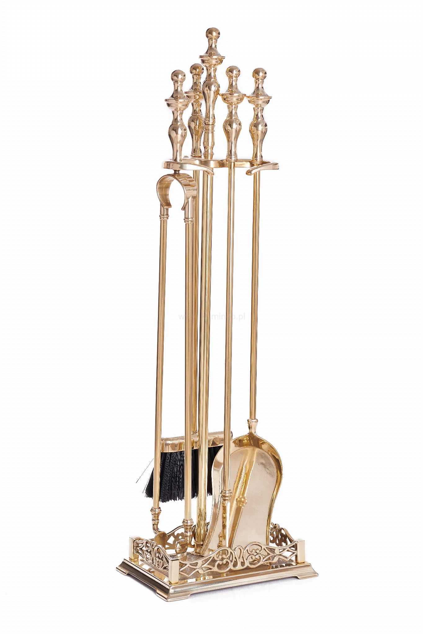 Wysokiej jakości zestaw akcesoriów do Twojego kominka od renomowanego producenta ekskluzywnej linii – ArtFuego. Ten okazały i praktyczny zestaw kominkowy jest niezbędny dla każdego posiadacza kominka i pieca kominkowego. Wykonany z mosiądzu polerowanego został starannie wykończony dzięki czemu jest zarazem oryginalny i elegancki. Zestaw składa się z czterech elementów: miotełka, szufelka, pogrzebacz oraz szczypce – wszystkie zakończone wygodnymi rączkami o stylu pałacowym. Całość znajduje się na stabilnej podstawie w kształcie prostokąta zdobionego ornamentami.