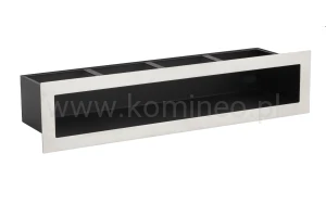 Kratki otwarte ArtFuego PRO-V OPEN - lufty wykonywane są z grubej blachy czarnej malowanej proszkowo (czoło i korpus) oraz w wersji z czołem wykonywanym z blachy chromoniklowej szlifowanej. Czoło kratki stanowi oddzielny element przyłączany następnie do kanału, co daje gwarancję gładkiej, estetycznej powierzchni i braku deformacji. Wszystkie elementy kanału są dopracowane do najdrobniejszego szczegółu, między innymi dlatego by nie znalazła się tam nawet najdrobniejsza szczelina, przez którą można byłoby dostrzec wnętrze kominka. Sposób konstrukcji kratki powoduje, iż straty ciśnienia są minimalne, a kratka jest łatwa do utrzymania w czystości.