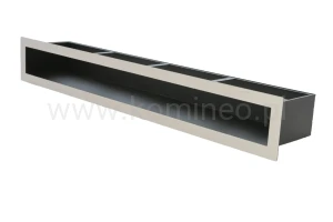 Kratki otwarte ArtFuego PRO-V OPEN - lufty wykonywane są z grubej blachy czarnej malowanej proszkowo (czoło i korpus) oraz w wersji z czołem wykonywanym z blachy chromoniklowej szlifowanej. Czoło kratki stanowi oddzielny element przyłączany następnie do kanału, co daje gwarancję gładkiej, estetycznej powierzchni i braku deformacji. Wszystkie elementy kanału są dopracowane do najdrobniejszego szczegółu, między innymi dlatego by nie znalazła się tam nawet najdrobniejsza szczelina, przez którą można byłoby dostrzec wnętrze kominka. Sposób konstrukcji kratki powoduje, iż straty ciśnienia są minimalne, a kratka jest łatwa do utrzymania w czystości.