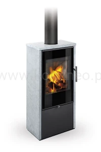 ROMOTOP LAREDO F kamień to piec kominkowy o nowoczesnym designie z okładziną zewnętrzną wykonaną z kamienia naturalnego, tj. szarego steatytu.
