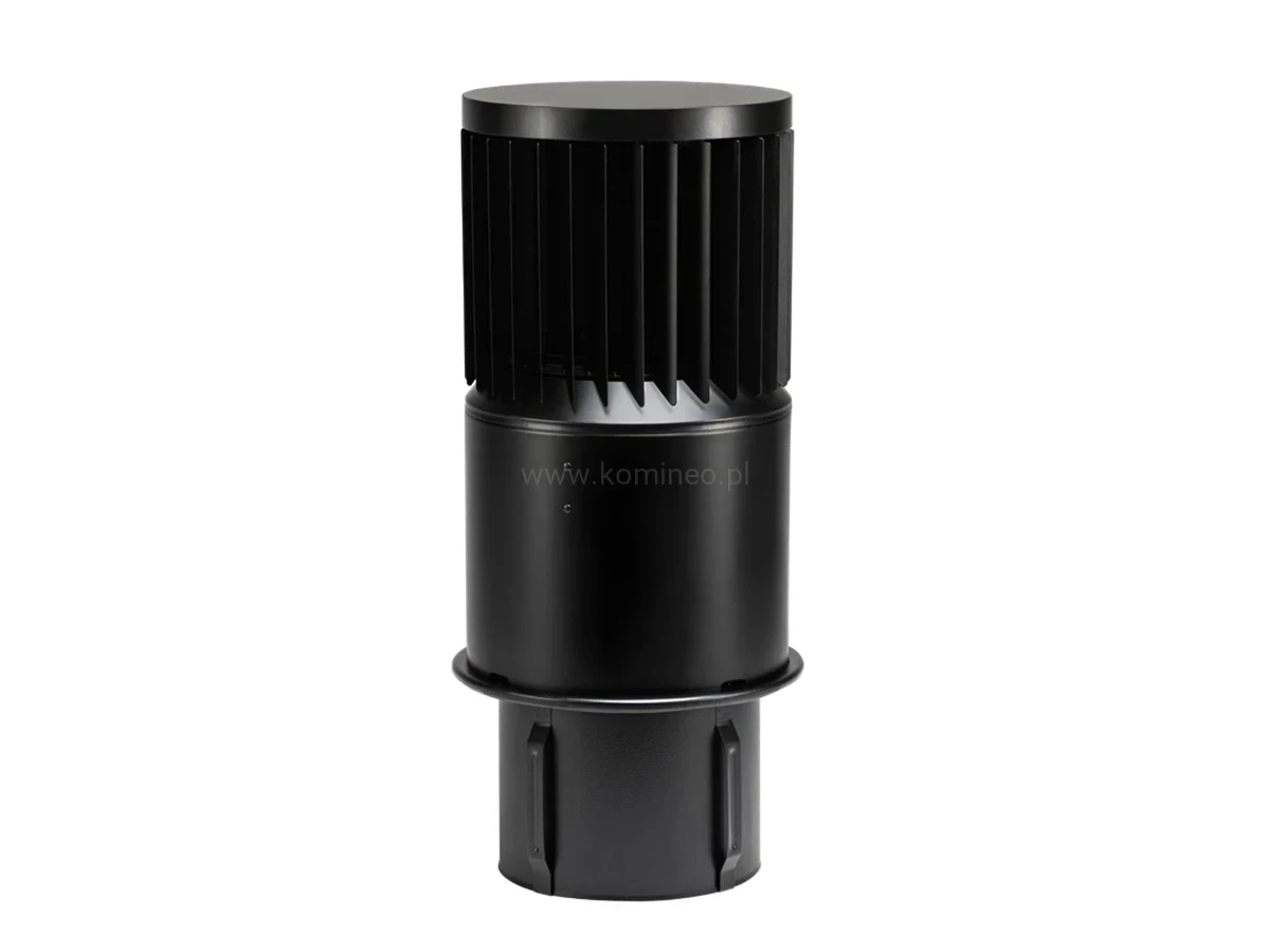 Podstawa i obrotowa turbina nasady zostały wykonane z blachy chromoniklowej i polakierowane lakierem proszkowym na kolor czarny (RAL9005). Unikalny kształt połączony z eleganckim, czarnym lakierem sprawia, że Turbowent zyskuje wyjątkowo nowoczesny wygląd.