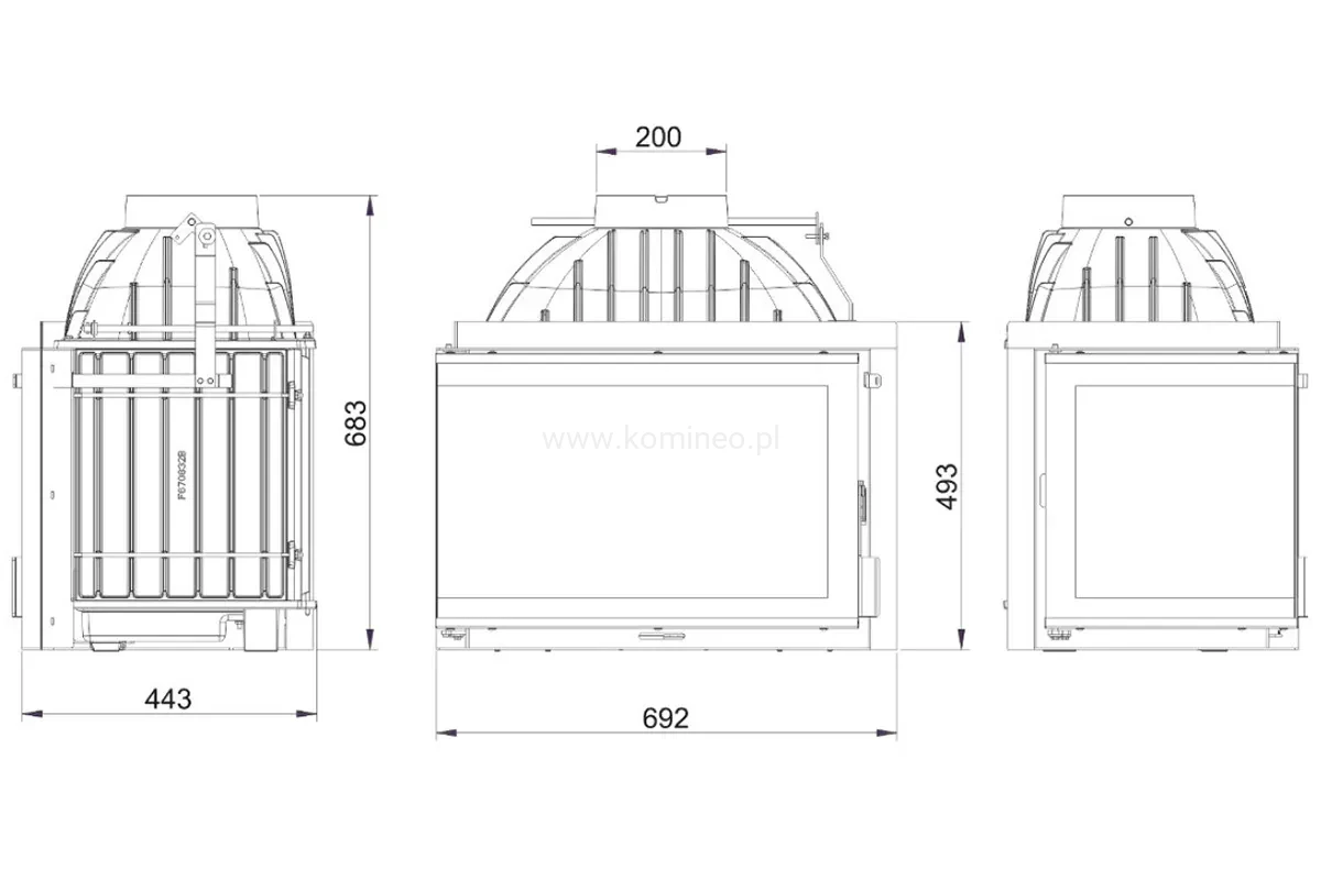 - Min. odległość od materiałów palnych 200 cm od lewego boku, 26 cm od prawego boku, 17 cm od tyłu, 150 cm z przodu